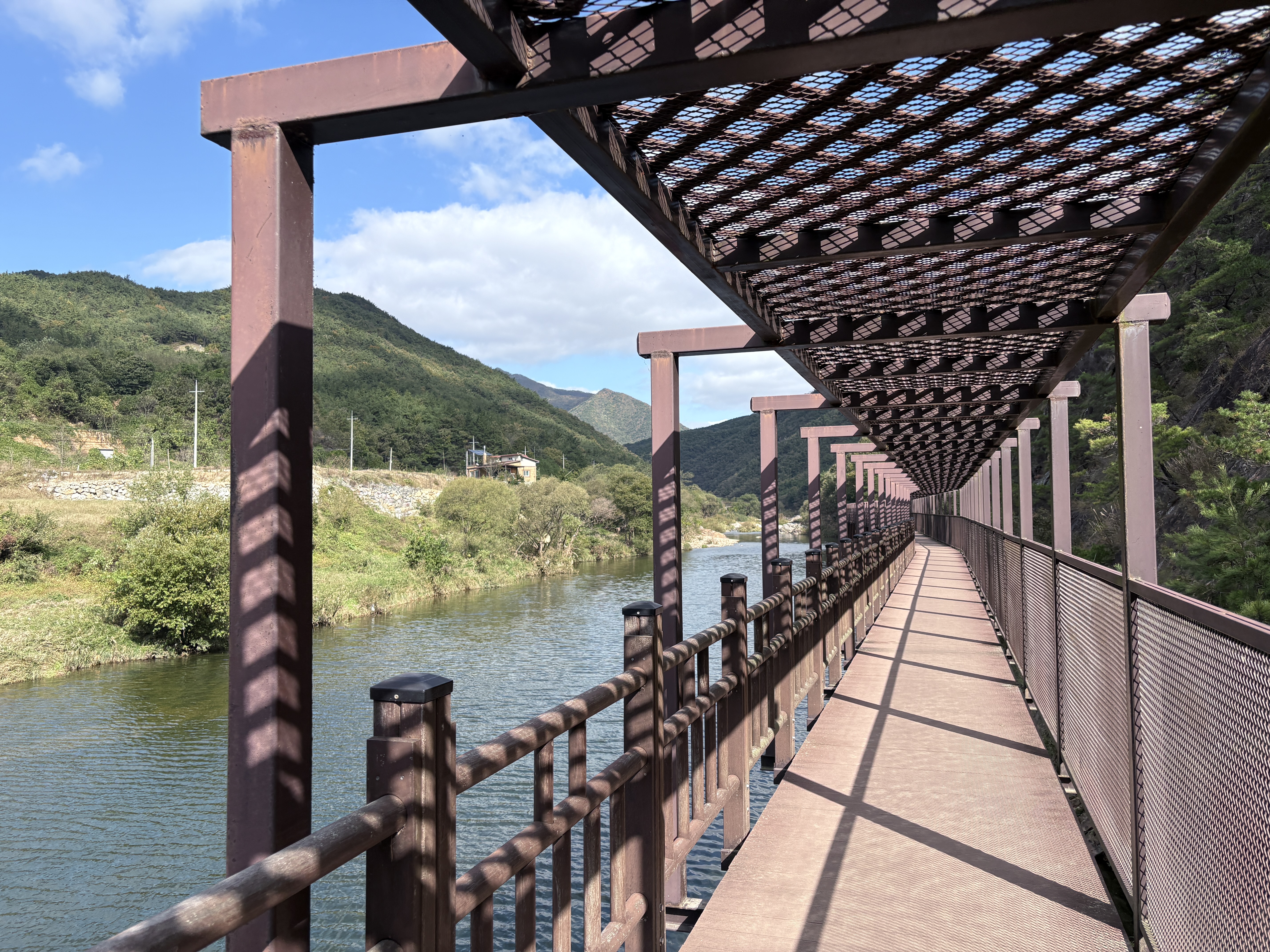 이 구간은 초강천을 따라 걷는 길로, 강변을 따라 조성된 나무 데크 덕분에 누구나 편안하게 걸을 수 있습니다. 물소리와 바람 소리가 어우러져 마치 자연과 하나가 되는 듯한 기분을 느낄 수 있죠.